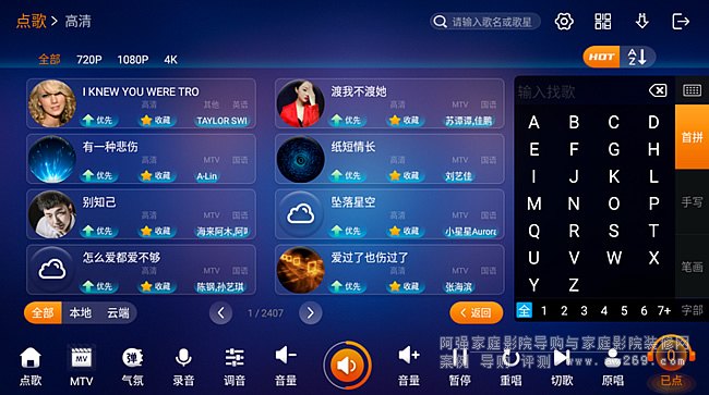 支持觸摸屏專業點歌,不止可以看電影,還是專業的觸屏點歌機。海量云端歌庫,實時更新,CDN全球超高速下載,系統在線升級,永不過時。
