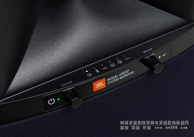 其型號名稱中的操作字母是“P”,代表動力;4305P是該公司在其消費類Studio Monitor系列中的第一款有源產品。主揚聲器中的內部放大器總共裝有300W RMS;每個高音單元為25W,每個中音/低音驅動器為125W。乘以兩個(揚聲器),你得到JBL的引用功率輸出。它由一對D類放大器提供。