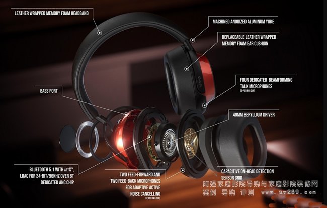 No5909在CES 2022上亮相,具有皮革包裹的記憶泡沫頭帶和可更換的耳墊,陽(yáng)極氧化鋁制軛和“汽車級(jí)金屬漆”耳罩。它使用藍(lán)牙 5.1 實(shí)現(xiàn)無(wú)線性,支持 SBC、AAC、LDAC 和 aptX 自適應(yīng)編解碼器,并由一對(duì)鈹涂層 40 毫米全頻動(dòng)態(tài)驅(qū)動(dòng)器提供音樂(lè)。