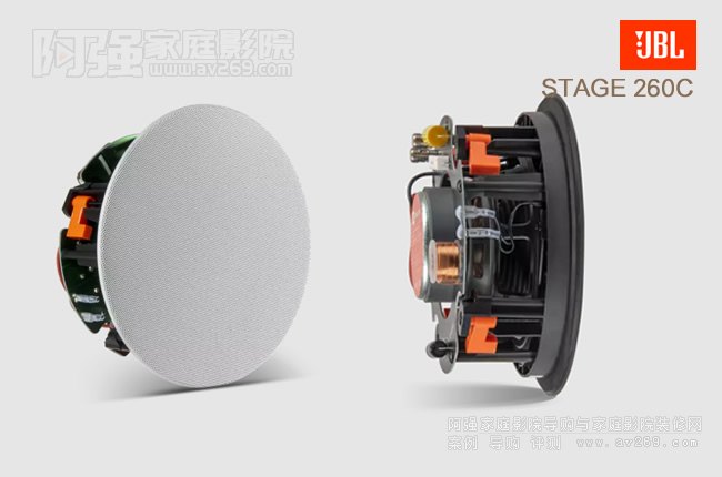 JBL STAGE 260C圓形吸頂喇叭,無擋板設計和磁性漁獲格柵可在不影響內飾的情況下安裝。 • 纖薄的設計可降低深度,即使在狹窄的墻壁之間或天花板背面也能安裝。 采用“狗腿結構”,可以輕松可靠地固定。 在短時間內安全施工。 采用聚纖維素錐體,重量輕,韌性強。 此外,通過配備 JBL 傳統的 SFG 磁路,可實現緊湊的嵌入式揚聲器,同時提供低失真、能量感的聲音。 采用25mm直徑的鋁圓頂高音揚聲器,實現清晰、清晰的高音域。 高剛性擋板具有波導結構,可抑制不必要的輻射并實現平滑的頻率響應。 • 高音揚聲器配有聲學鏡頭,可調整方向特性。 此外,它采用“同軸雙向”結構,在整個頻段中實現清晰、準確的聲像定位。