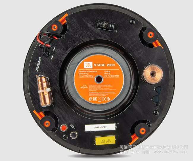 JBL STAGE 280C圓形吸頂喇叭,無擋板設(shè)計和磁性漁獲格柵可在不影響內(nèi)飾的情況下安裝。 • 纖薄的設(shè)計可降低深度,即使在狹窄的墻壁之間或天花板背面也能安裝。 采用“狗腿結(jié)構(gòu)”,可以輕松可靠地固定。 在短時間內(nèi)安全施工。 采用聚纖維素錐體,重量輕,韌性強。 此外,通過配備 JBL 傳統(tǒng)的 SFG 磁路,可實現(xiàn)緊湊的嵌入式揚聲器,同時提供低失真、能量感的聲音。 采用25mm直徑的鋁圓頂高音揚聲器,實現(xiàn)清晰、清晰的高音域。 高剛性擋板具有波導(dǎo)結(jié)構(gòu),可抑制不必要的輻射并實現(xiàn)平滑的頻率響應(yīng)。 • 高音揚聲器配有聲學(xué)鏡頭,可調(diào)整方向特性。 此外,它采用“同軸雙向”結(jié)構(gòu),在整個頻段中實現(xiàn)清晰、準(zhǔn)確的聲像定位。