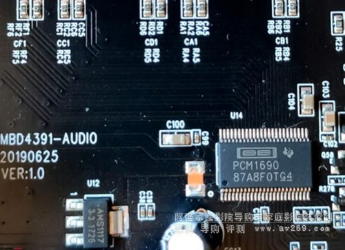 ▼第1顆DAC芯片,德州儀器的PCM1690,采樣率192kHz,信噪比達到113dB。