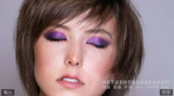 ▼畫面2對比:以人臉中線為基準,左邊是輸出,右邊是原圖,請注意觀察對比度、飽和度、膚色、眼影、唇紅。
