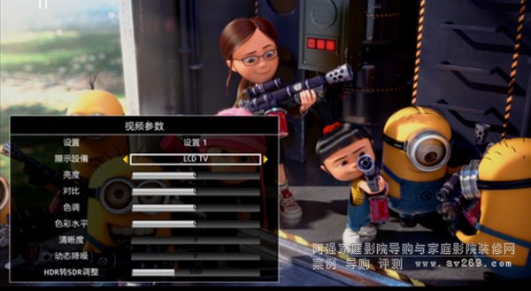 ▼G5800可以手動調節亮度、對比度、色調、色彩水平(飽和度)、清晰度、動態降噪強度等,以適應每個人的獨特口味。而且,可以將你的設置保存成最多三個預置設置,從而進行快速切換。顯示設備支持度方面,可以與LCD / OLED / 投影進行配合,自動選擇最佳輸出參數。另外,對于不支持HDR的傳統顯示設備,G5800可以將HDR轉換為SDR,并且轉換參數是可以手動調整的!老妖我將G5800和極米H1投影搭配使用,明顯感覺到H1的投射畫面質量上升了兩個檔次,有一種脫胎換骨的感覺。