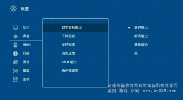 ▼音頻降混、高采樣率輸出、動態壓縮、DSD源碼輸出: