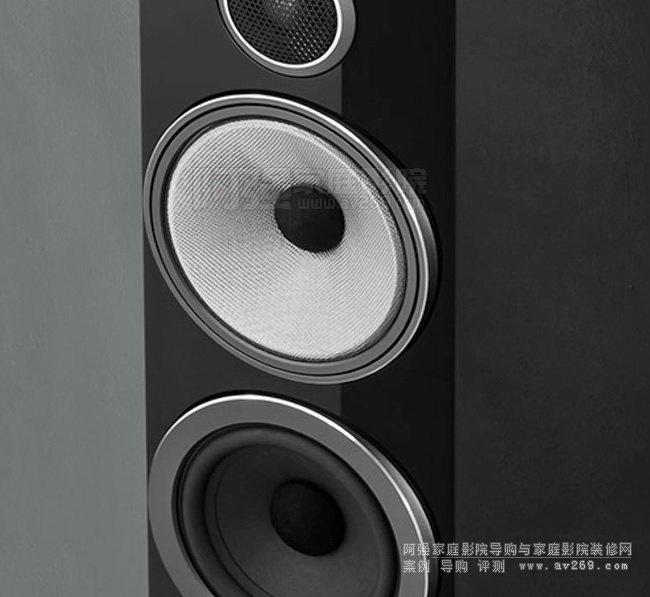 碳膜半球型高音單元專為700系列打造。鋁質雙振膜高音單元經過重大改進,崩裂閾值提高到47kHz,帶來出色聲像和音樂細節。