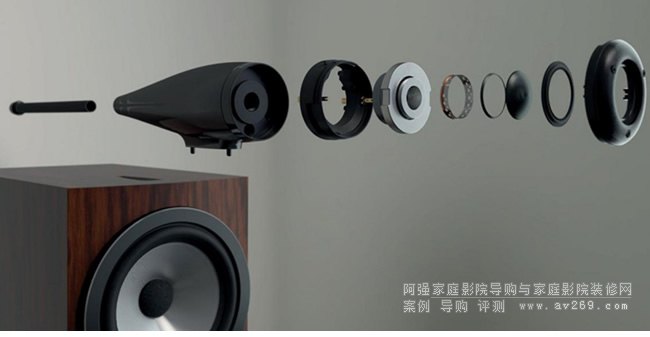 除了這些機(jī)械方面的改進(jìn)外,高音單元頂置振膜采用了源自寶華韋健的碳膜半球型高音單元,其首次崩裂性能達(dá)到47kHz,另外還包括改進(jìn)后的氣孔式音圈和新升級(jí)的磁鐵。即使是高音單元位于隔音板內(nèi)的707 S3、706 S3、704 S3和HTM72 S3 也從這些改進(jìn)中受益。而明顯加長(zhǎng)的導(dǎo)聲管系統(tǒng),與高音單元頂置單元一樣,可以減少失真,帶來更清晰的音質(zhì)。