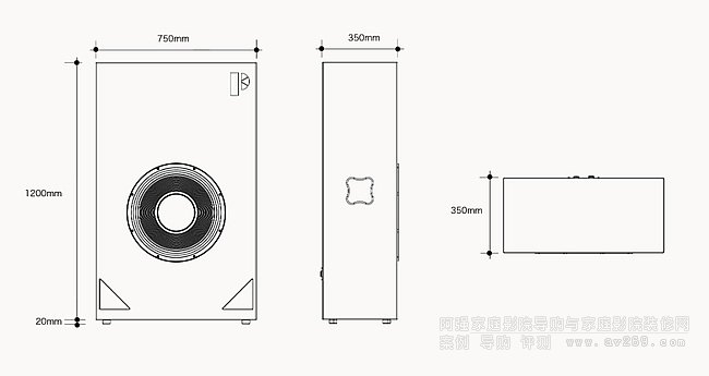 高 1200 x 寬 750 x 深 350 mm (不含支腳) 高 47.2 x 寬 29.5 x 深 13.8 英寸(不含支腳)