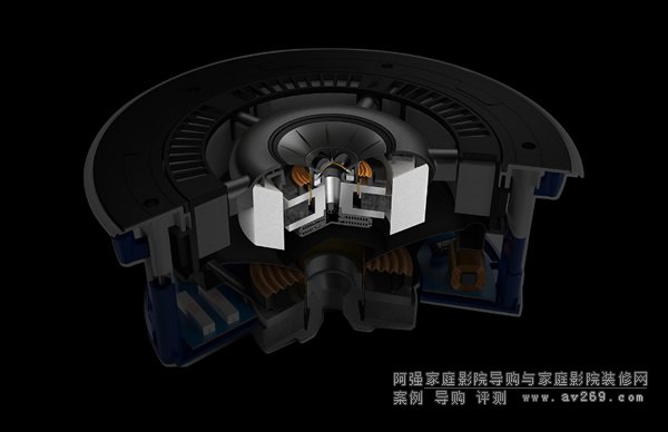 KEF英國工程團隊正為最新研發(fā)的腔形聲學控制(CRC)申請專利,CRC帶有吸音物料的開背式中頻設(shè)計,可消除高達 30dB的中頻失真,可見于典型的三分頻同軸排列設(shè)計中。憑借腔形聲學控制技術(shù),Ci250RRM-THX 可實現(xiàn)三分 頻同軸揚聲器中迄今為止最逼真的中頻音響效果。阿強家庭影院