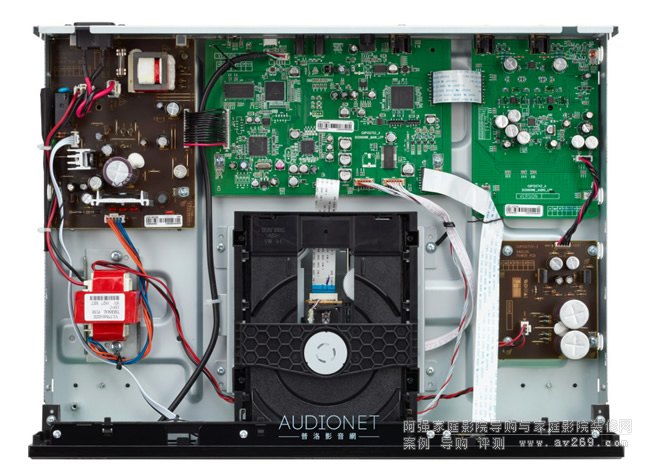 ▲Denon DCD-900NE,從機箱內部圖可以看到,Denon原廠在設計時特別將CD讀取機構設置于中央位置,同時在其周圍的電路設計也採用較為排列的排列形式。此種設計形式除了能充分利用機箱內部空間,也能達到原廠獨家的抑振效果。為將這部CD播放器打造得符合原廠的“Vivid & Spacious”理想音質水準,研發人員也特地在它身上採用許多Hi-End級發燒元件,包括數位、類比電路所採用的碳膜電阻、Melf電阻、薄膜聚合物多層電容......等等,都是他們家專屬的高階元件。