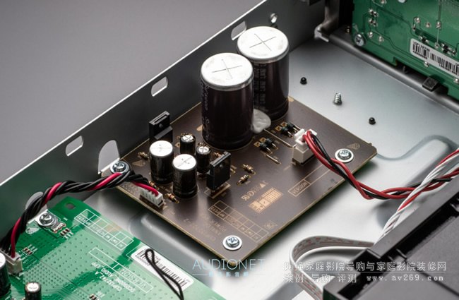 這些元件都是由Denon原廠的聲學工程師與零件制造商長期合作所研發,也就是專屬于他們家的高階元件,包括數位、類比電路所採用的碳膜電阻、Melf電阻、薄膜聚合物多層電容......等等,這些元件都讓這部播放器的音質更加提升。其中最值得一提的就是Denon聲音總監山內慎一精心挑選的大容量電解電容,容量高達3,300μF,不僅能提供穩定、充足的電源,同時也能讓音訊有更為線性的頻響表現。
