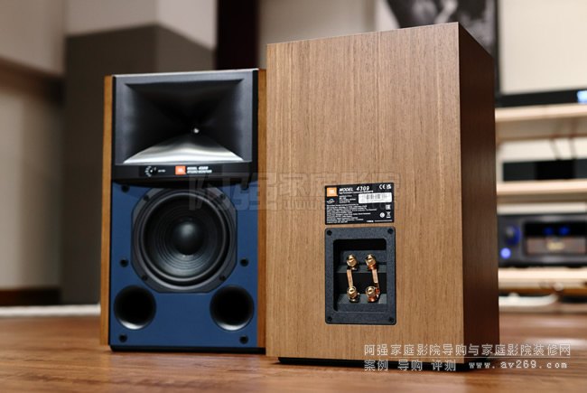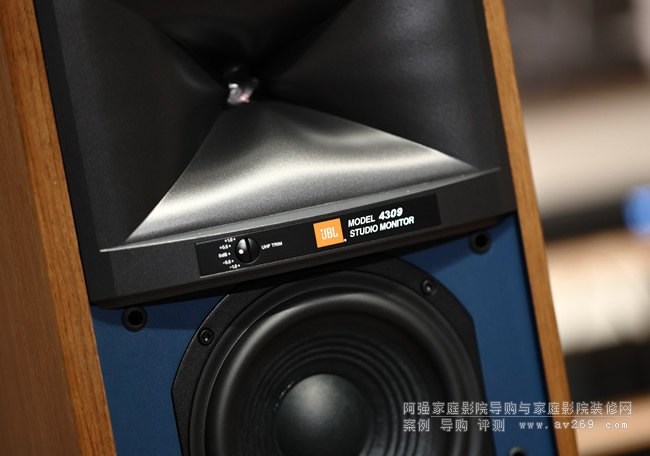 4309采用4300系列的經典外觀設計,藍色的前面板,相信這個外觀設計也是讓大家最為著迷之處,不過在單體與分音器等用料與設計方面,4309采用的是JBL最新的技術。 4309為兩音路設計,高音單體為1顆JBL最新專利的壓縮驅動器D2410H-2,使用1“ annular ring、Teonex®振膜,運用先進的HDI™(High-Definition Imaging)號角。 低音單體為JBL JW165P-4,6.5“的pure pulp紙盆振膜,搭載1.5”的音圈與金屬框架。 兩個反射孔位于前面下方,有助于擺位避免后墻造成的聲音影響。