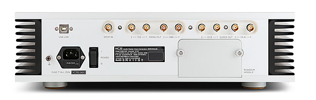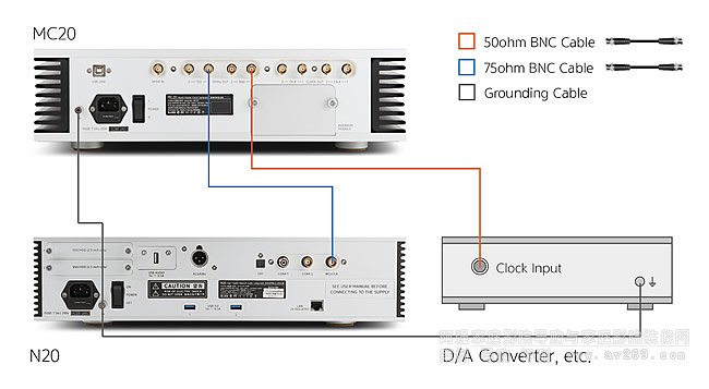 MC20 可與各種相關(guān)的高端品牌 DAC 和音樂服務(wù)器配合使用。目前支持 MC20 的 Aurender 型號是 N20、W20SE 和 N30/N30SA,它們都具有 75Ω 時鐘輸入。