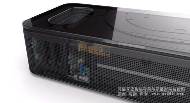 相較于令人驚嘆的簡約外觀,此款高級 Dolby Atmos® 杜比全景聲家庭娛樂揚聲器的內部技術更令人震驚。九個揚聲器精確地排列在箱體內,包括兩個向上發射聲音的偶極揚聲器單元。它們與專有的 PhaseGuide 定向傳聲技術協同工作,將多方位聲音傳送到房間的不同區域。即使在沒有揚聲器的位置,你也一樣能聽到澎湃聲效!