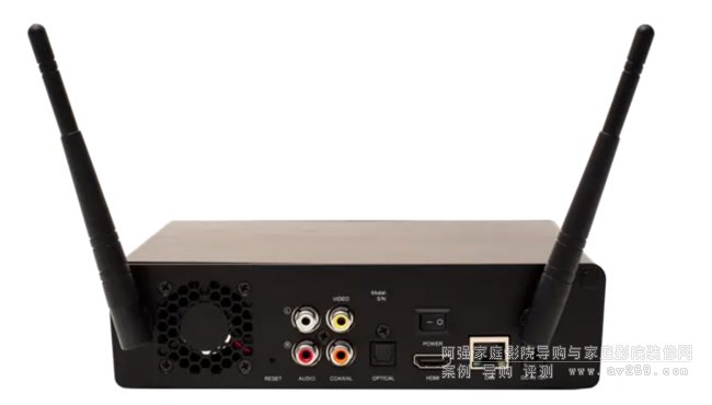 剛介紹完側面豐富滿滿的接口,背面接口也是布滿“十八羅漢”,左右兩邊分別布有二根超強信號的無線WIFI天線,左邊很明顯看到有一個靜音設計的溫控智能散熱風扇,根據實際環境運行,以最低的噪音帶來可靠的運行,風扇右邊有一個RESET硬性強制重置鍵清除所有APP及數據(級別高于系統軟件的恢復出廠設置)而只保留系統,依舊保留復合音視頻及同軸與光纖音頻輸出端子,滿足老式功放及電視的搭配使用,配有HDMI2.0輸出,擁有1個千兆有線網口,背后還有一個小武器“硬性開關電源”,并且根據需求我們對電源做了上電即開機滿足智能家具控制的需要,當然也可以使用遙控器的電源關機(實際為待機,用電僅小于0.2W)