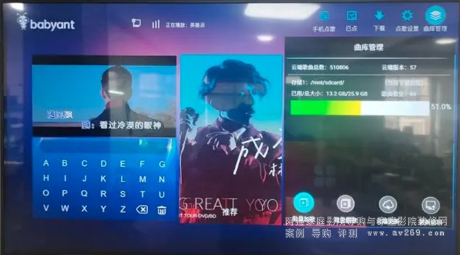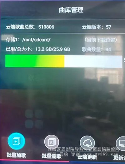 從上圖可了解到云端歌大約有50萬首(是50萬首),重點請看內置存歌空間,足足有25.9GB,足夠存大約200首歌。好奇的歌友可能會問,200首怎么可能夠呢?沒錯,我們就這個問題做了技術處理,剛才說了云端有50萬首,可以隨便下載(下載速度取決于你家的網速,我這里基本上15秒下載一首歌),當存儲空間滿了之后,機器會自動刪除最不經常唱的歌曲,然后保留200首歌神你最喜歡唱的歌。說句實話,當今世界一個人會唱200首歌的人真不多。