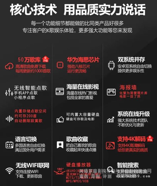 手機APP、無線智能點歌屏、小程序等三種方式連接,非常方便,掃碼即可。通過上面二張圖可知,有二個地方可以顯示掃二維碼下載APP及連接等。這沒什么好說的,就是點歌很方便!以下給大家介紹一下關于“影”方面眾所周知目前硬盤播放器己是安卓系統的天下,在這形勢下海思3798方案是穩定性最佳,銷量最大,功能強大,音畫質一流。具體為何如此多人選擇海思3798的硬盤播放器,我們來看個究竟!