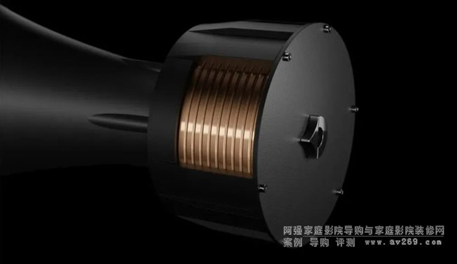 在箱體內的超低音是,全新的XB碳纖維復合單元,使用長纖維紙盆和碳纖維復合而成。堅固穩定,抗扭轉性極強,聲音精準,動態龐大。而在線圈方面,從原先的100mm直徑增加到153mm,長度也增加50%達到了480mm。搭配兩個由歐洲最高20萬伏特設備制造的超強磁體,能夠產生1.15T的通磁量。