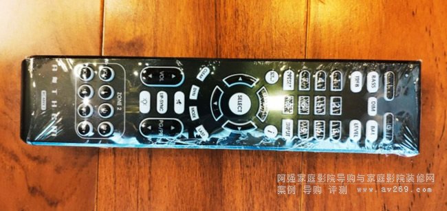 MRX1140的遙控器長這樣,為了不要臟污了它,用保鮮膜先包起來。 但是想要小抱怨一下,這支全塑料質感的遙控器,跟它的身價真搭不上阿~~~