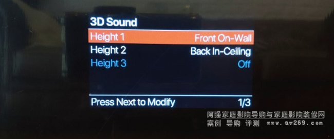 MRX 1140共可以啟動3組天空聲道,而每組又個可以設定是on-wall(掛墻)、in-ceiling(天花板)或是ATMOS反射式喇叭三種選項。