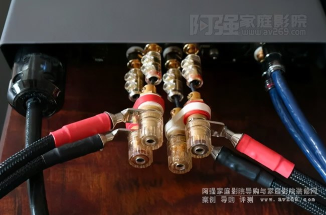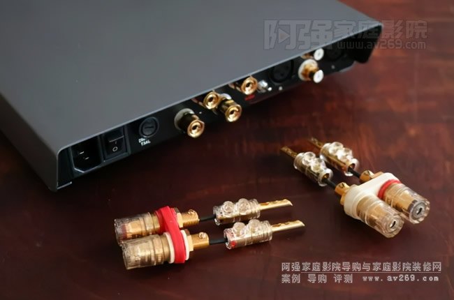 為了能夠使用Jorma Trinity音箱線,我用WBT連接器和ViaBlue香蕉插通過短的OCC實芯線連接,制作了一對定制適配器。然后將這個組件使用在三臺功放之間。