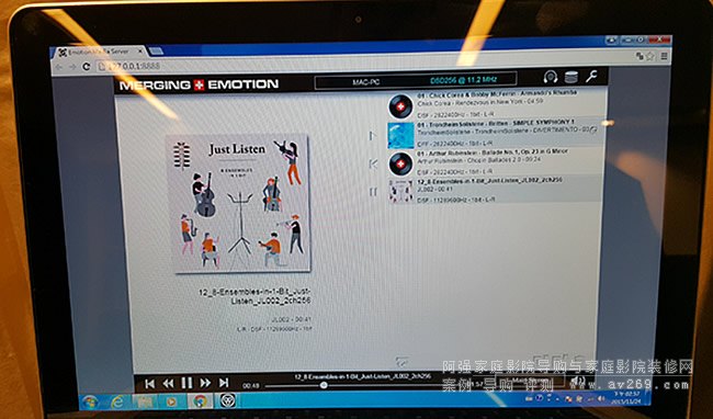既然NADAC透過網路與電腦連線,那麼電腦端該使用什麼播放軟體?基本上一般玩家使用的Foobar、JRiver與iTunes等等,都可以直接與NADAC連線播放,但是Dominique認為這還不夠好,Merging本來就是錄音室的技術提供者,所以Dominique開發了Emotion播放軟體,把Pyramix錄音工作站、Ovation媒體伺服器與取樣頻率轉換等技術,全部融合到Emotion播放軟體里面,換句話說,Dominique把Pyramix工作站里面的播放軟體技術,「變成」家用版的Emotion,隨機免費贈送.