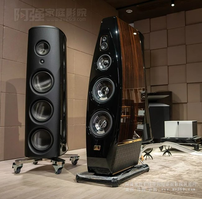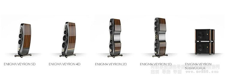 Kharma(卡瑪)旗艦系列Enigma Veyron(威龍)系列中有1D、2D、4D、5D四款座地式揚聲器和一款超低音揚聲器。