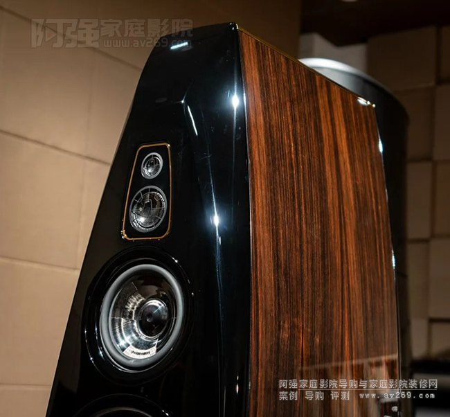箱體的設計方面,與同系列1D、2D那種上下寬大、中間收窄的“啞鈴式”箱體有所不同,4D的箱體采用了較為傳統和常規的上小下大的外形,略略后仰,整體顯得在穩重中又增加了輕靈之感。同時,4D的箱體更像是一只梭形,因此可以有效地抑制箱體的低頻駐波,保證聲音的清晰干凈。前障板被精心處理成5個不同形狀的弧形表面,除了美觀之外,也有可以有效地避免雜亂聲波的反射和衍射,保證聲音的準確度。