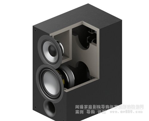 每個 Uni-Fi 2.0 外殼都采用厚實的 MDF 外壁和豪華的黑灰乙烯基飾面設計。特殊位置的內部支撐增加了機柜外壁的剛度和強度,減少了導致不必要的著色的機柜振動。