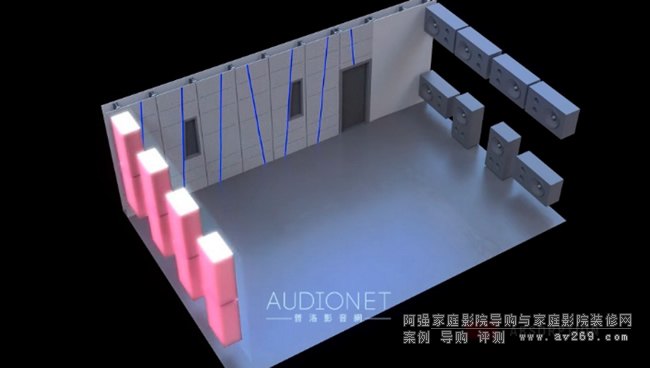 在簡短的影片說明中并沒有提到“用后方超低音陣列發聲”的狀況,但我合理推測應該也會跟前方超低音陣列發聲的情況一樣:在后方發出的低頻行進到前墻時,由前方超低音陣列消音,殘余能量再回彈到后墻時,由后方超低音陣列消音。