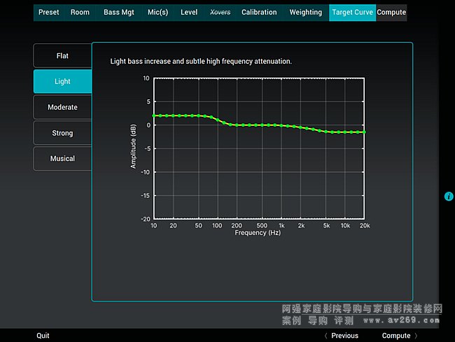 Light(光線),輕微的低音增加和微妙的高頻衰減(如上圖所示);