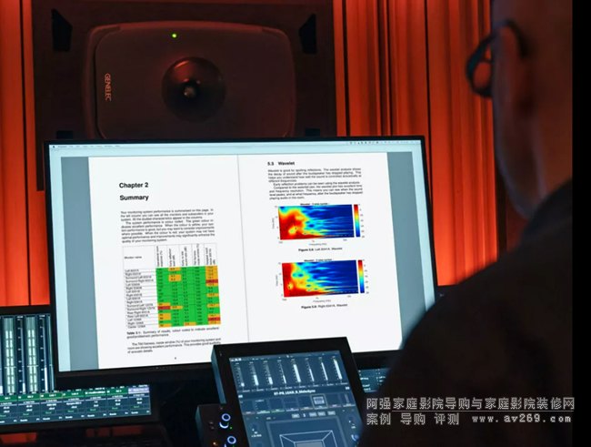 報告分析了多項聲學變量,主要包含頻率響應精準度、聽音位置上的早期反射聲占比、延時精準度、早期反射聲結構,以及完整的房間聲學分析,評估是否符合 ITU-R BS.1116 建議中的最佳指標等。