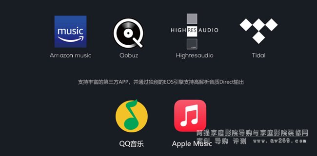 DMP-A6音樂服務直接嵌入了全球多個主流音樂內容服務平臺: Tidal、Qobuz、Highresaudio、Amazon music等,可以通過網絡直接享受海量高質量音樂服務。內嵌的音樂服務可同時通過本機屏幕與手機控制APP瀏覽與播放,讓您感受無限流媒體音樂的魅力。