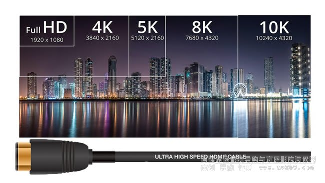 從目前的情況來看,想要實現48Gbps高帶寬的10米以上的長距離傳輸,HDMI光纖線是一種不錯的解決方案,同樣也可以考慮采用HDMI轉高速網線如(7A類線以上規格)的方式。另外,對于HDMI 2.1標準所支持的畫面分辨率,除了8K之外,還能支持10K超高清顯示。其實10K就是8K的2.35:1版本,垂直分辨率依然是4320,只不過畫面的水平分辨率提升到10240。同樣,HDMI 2.1標準也支持4K的寬屏版5K超高清顯示,也就是5120×2160。