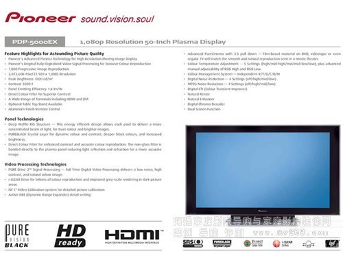 平板電視領域,先鋒選擇以等離子為主攻方向,率先于1997年推出50英寸平板電視。要知道,彼時顯像管電視大行其道,主流畫面尺寸還介于29~34英寸(4:3畫幅)之間。此后先鋒收購NEC等離子業務,并于2006年推出全球首款50英寸FHD(全高清)等離子電視PDP-5000EX,一時風頭無二。