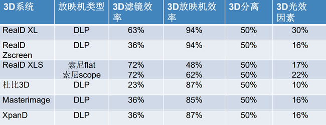 綜合效果是損耗2D亮度的90%(最差)和70%(最好)之間