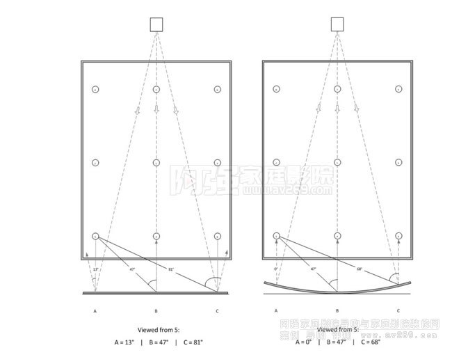弧形銀幕的光分布效果更好,在影院中軸上觀看