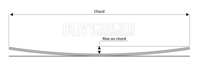 哈克尼斯的建議是5%弧度R.O.C. = 銀幕弧長的5%50英尺銀幕寬度:2.5英尺銀幕深度20米銀幕寬度:1米銀幕深度