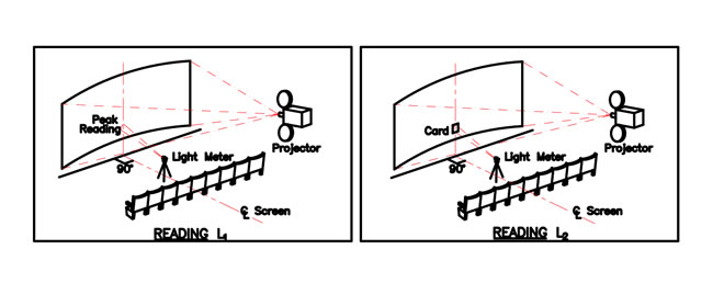 通過點(diǎn)測光儀器或哈克尼斯銀幕亮度檢測儀來測量銀幕亮度