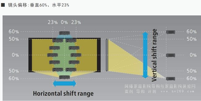 大范圍鏡頭位移功能,可以采用天花板吊頂、立柜、后墻隔板等多種方式靈活安裝。鏡頭位移范圍為:垂直方向±60%,水平方向±23%。