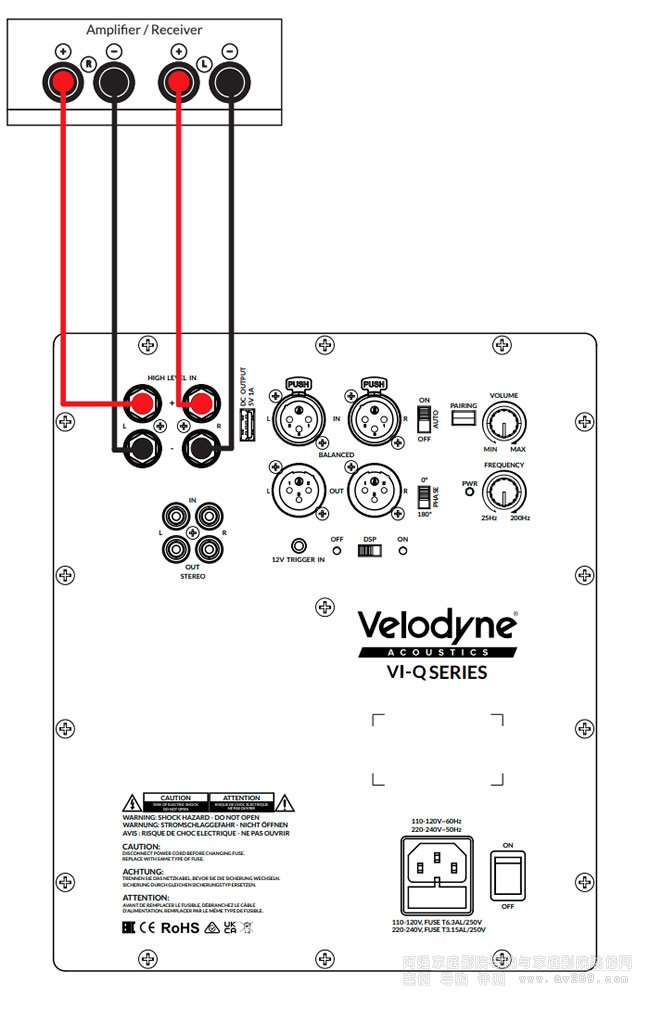 Velodyne VI-Q 15“ 低音炮提供廣泛的連接選項套件,包括專業(yè) XLR 連接器、用于左右聲道的 RCA 插孔以及高級連接器。無縫的聽覺之旅等待著,沒有界限。