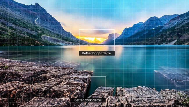 局部對(duì)比度增強(qiáng)器將圖像劃分為1024個(gè)區(qū)域,分析各區(qū)域亮度并獨(dú)立調(diào)整gamma值,以獲得更好的亮暗部清晰度和更豐富的4K圖像深度。