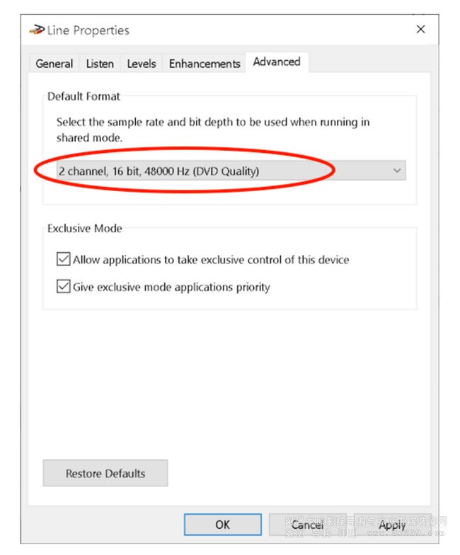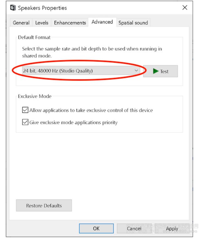 打開“控制面板”,然后打開“硬件和聲音”,然后打開“管理音頻設備”。在“播放”選項卡上,單擊輸出設備,然后單擊“屬性”。下拉選擇器以設置采樣率。