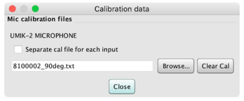 注意:請務必對UMIK使用“麥克風”設置,而不是“默認輸入”,因為必須使用麥克風輸入才能獲得正確的SPL讀數。單擊“Cal 文件”選項卡以查看所有設備和輸入及其存儲的 cal 文件。