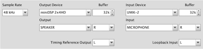 如果您使用的是 UMIK-2,請單擊它并下拉菜單以設置其采樣率。(UMIK-1 只能在 48 kHz 下工作。