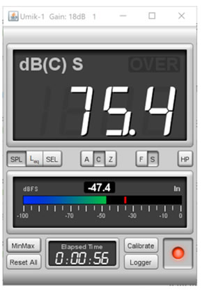 現在打開 REW SPL 電平表。單擊右下角的紅色按鈕將其打開并調整系統音量,直到儀表讀數約為 75 dB。或者,更改 REW 信號發生器中的輸出電平。