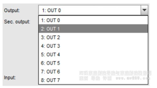 3、下拉“輸出”的通道選擇器,并將其設置為 OUT0(左前)。