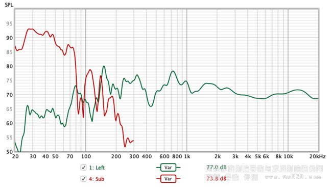 隨時更改每個測量的名稱,以跟蹤哪個是哪個。完成所有通道測量后,您可以在“疊加”窗口中一起查看它們。使用彈出的控件疊加層對圖形應用一些平滑。您可以使用下面的復選框打開和關閉單個圖表的顯示。例如,以下是我們測試系統中的低音炮和左揚聲器: