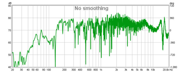 來(lái)自揚(yáng)聲器的聲音首先到達(dá)麥克風(fēng),然后從地板反射,然后從天花板反射,然后從側(cè)墻的某個(gè)地方反射。這些反射繼續(xù)在房間周?chē)磸楅L(zhǎng)達(dá)數(shù)百毫秒。這就是我們聽(tīng)到的,但它很難準(zhǔn)確測(cè)量揚(yáng)聲器!為了說(shuō)明這一點(diǎn),以下是在典型的家庭環(huán)境中使用 UMIK-3 和 REW 拍攝的 1 英寸全頻驅(qū)動(dòng)器的測(cè)量結(jié)果: