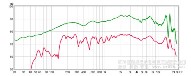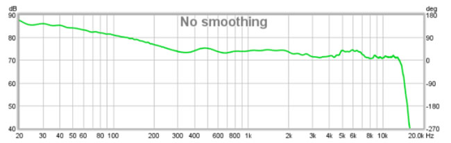 另一種可用于使原始測(cè)量圖更有用的技術(shù)是平滑。查看主窗口時(shí),可從“圖形”菜單訪問(wèn)此功能,或從“疊加”窗口上的“控制”對(duì)話框訪問(wèn)此功能。例如,上圖以紅色顯示具有 1/12 倍頻程平滑(并且沒(méi)有門(mén)控)的相同測(cè)量值。雖然平滑有時(shí)可用于提供與門(mén)控類(lèi)似的效果,但此示例表明您必須小心:14 和 17 kHz 處的峰值已被平滑,現(xiàn)在不準(zhǔn)確。